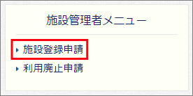 ①ちた梅子ネットワークのポータルサイト、ページ右下の施設管理者メニュー「施設登録申請」より申請を行います。
