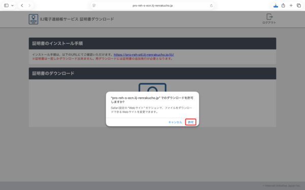 あらかじめPC版の電子@連絡帳をご利用いただき、管理メニューで証明書を発行し、お手元にご準備のうえインストールを行ってください。