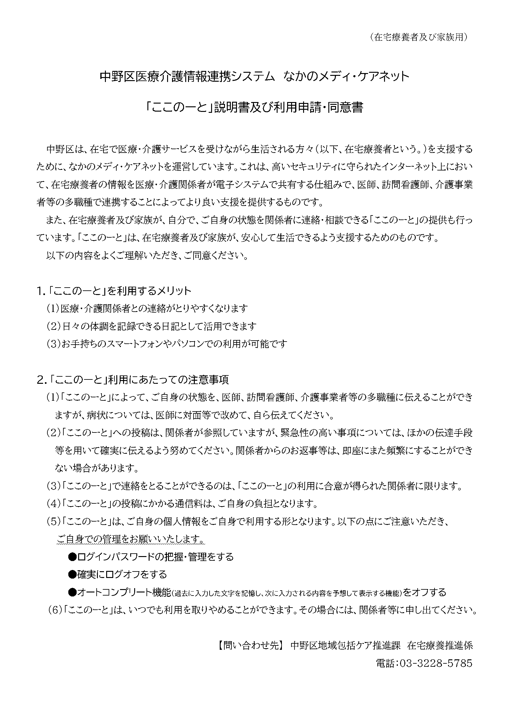 説明者の方は、本説明書及び利用申請・同意書をご用いてご本人・ご家族等へご説明ください。